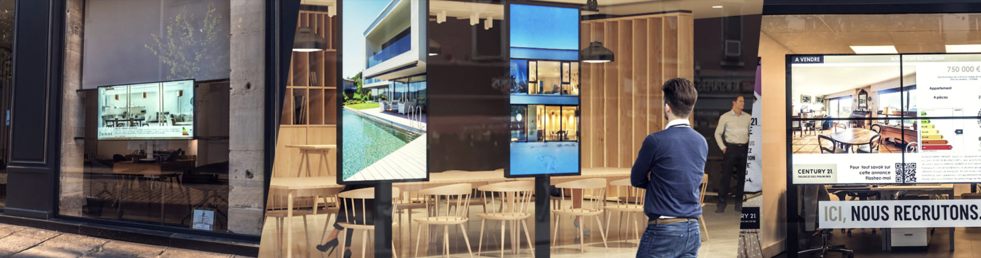 Erregen Sie die Aufmerksamkeit von Passanten, indem Sie Ihr Schaufenster digital gestalten. Denn eine dynamische Schaufensterwerbung bietet zahlreiche Vorteile. Die Blicke von Passantinnen und Passanten werden automatisch zu Ihrer digitalen und beleuchteten Schaufensterwerbung wandern, insbesondere, wenn es draußen dunkel ist. So können Sie aktiv für Ihre Produkte werben.