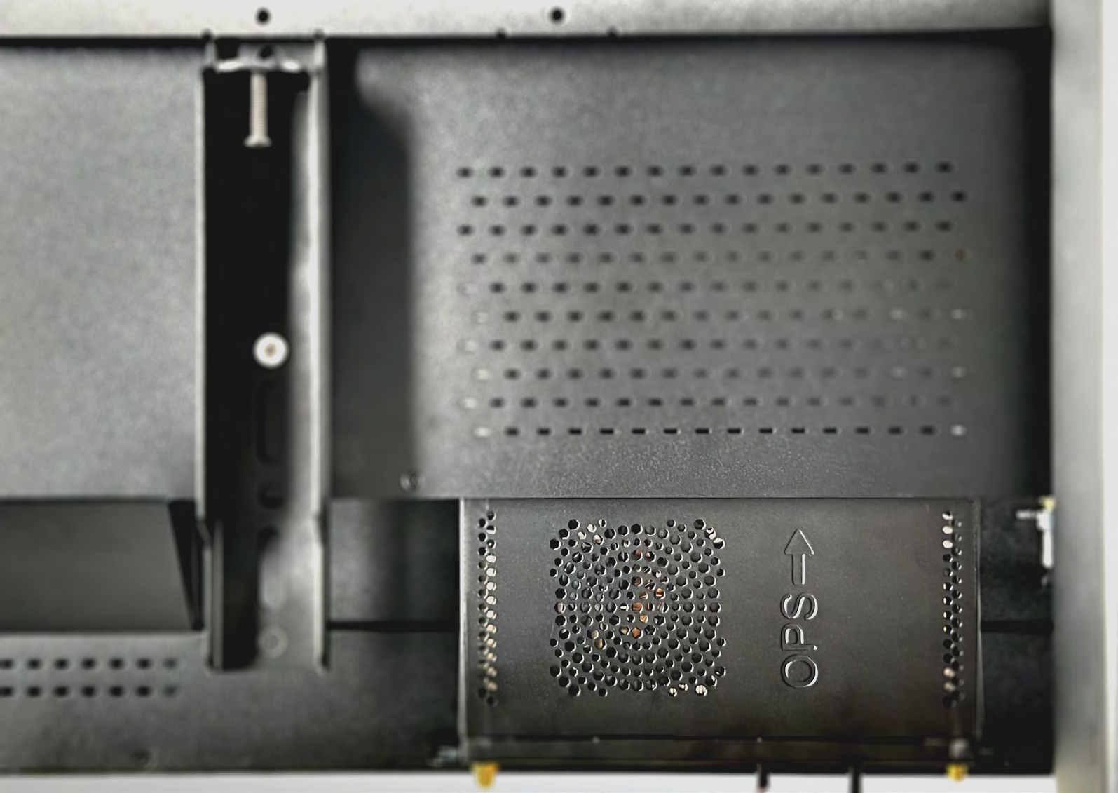 Der OPS-Steckplatz entspricht dem internationalen Standard und ermöglicht die Verwendung des VM-Players (oder jedes anderen marktüblichen OPS-Players), der im Gehäuse versteckt werden kann. Diese schnelle Verbindung erleichtert auch die Wartung oder Aufrüstung des Players.
